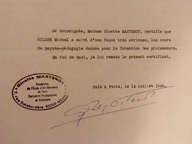 - Drawing, painting and modeling: complete cycle of teacher training at the Ecole d’Art Martenot de Paris.