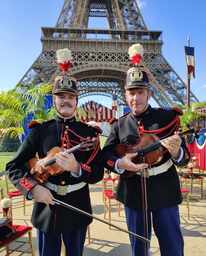 Michel Hilger a eu la joie de retrouver son costume d'altiste de la Garde Républicaine les 3 et 4 septembre à l'occasion d'un tournage au pied de la Tour Eiffel. Voici quelques photos souvenir.