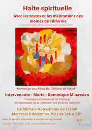 Le diocèse de Créteil propose le 8 décembre 2021 une halte spirituelle consacrée à l'anniversaire des 25 ans de la mort des moines de Thibhirine avec la participation de Marie-Dominique Minassian, théologienne de l'université de Fribourg et responsable de la collection «Les écrits de Thibhirine» et Michel Hilger en tant qu'altiste.
