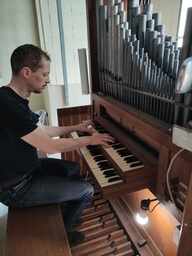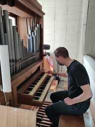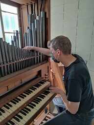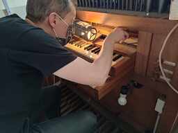 Il a fallu en ce samedi 12 juin 2021 après-midi 3 bonnes heures et demie intensives pour Jean-Luc Navarre et Michel Hilger de la société Art au Pluriel pour apporter enfin de nouvelles perpectives à l’orgue de l’Église St Jean Bosco à Igny(91) ! Réglages des touches des claviers complètement aléatoires, ajustage de justesse de certains tuyaux, etc…. Cette instrument datant des années 1950 et qui était laissé tomber en désuétude va pouvoir satisfaire bien d’avantages les organistes liturgiques et les organisateurs de concerts spirituels à venir !