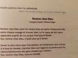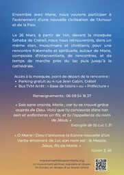 Lors de cet événement inter-religieux lié au mouvement islamo-chrétien "ENSEMBLE AVEC MARIE" lors des moments organisés en la Cathédrale Notre Dame de Créteil de 16h à 17h Michel Hilger a été sollicité par les organisateurs pour illustrer certains moments forts et proposer des ponctuations artistiques, poétiques et musicales de son cru interprétées avec ses choristes qu’il dirigera depuis les claviers de l’orgue. Parmi les pièces chorales qui seront entendues il y aura 4 chants sacrés qu’il a co-écrit et co-signé en vue de produire un CD avec son ami Jacques Cusset (Père Blanc ayant vécu une partie de son sacerdoce en Algérie).